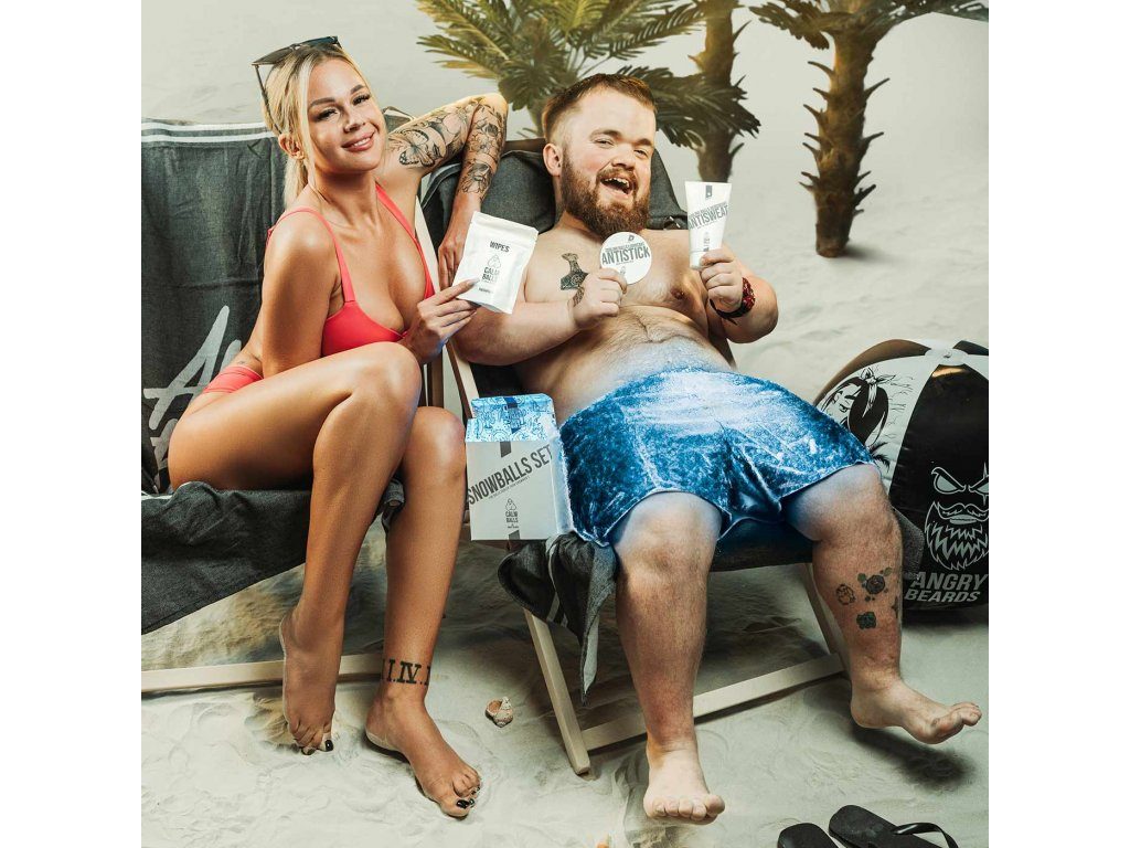 Co si budem. Každej chlap by rád polibek ledový královny na kulích. Daruj sadu svýmu kancovi a sleduj, jak bude experimentovat s chladivou intimní kosmetikou od Angry Beards. Vařený vejce v trenclích nikdo z nás mít nechce a Snowballs set je do letních pařáků úplná KPZka – Krabice PytloZáchrany! Mázni kule před sportem Antistickem, do kanclu Antisweatem a v týlu nepřítele klidně přepígluj Freshfellou. Ve všech maká mentol, kterej chlapovi dopřeje pocit ochlazení, tělo se trochu umravní a pytel zatáhne.