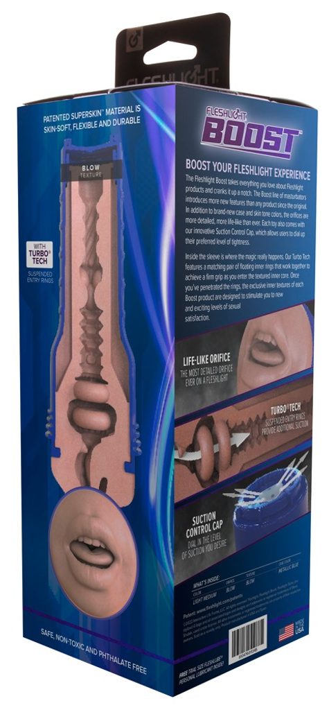 Snadno použitelný masturbátor Boost Bang od Fleshlight je dodáván v diskrétním pouzdře s detailním, realistickým otvorem pochvy.