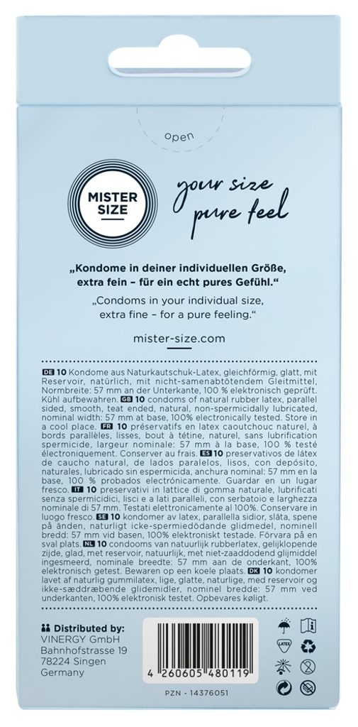 Sex je obzvlášť skvělý, když oba společně převezmou odpovědnost a pak se jeden druhému s dobrým pocitem oddávají. Mister Size vám k tomu dává ideální příležitost - protože díky své tenké a sotva znatelné vrstvě už kondom nestojí mezi vámi, ale stává se jedinečným spojením. Oba se tak můžete cítit bezpečně a užívat si sex v celé jeho intenzitě.