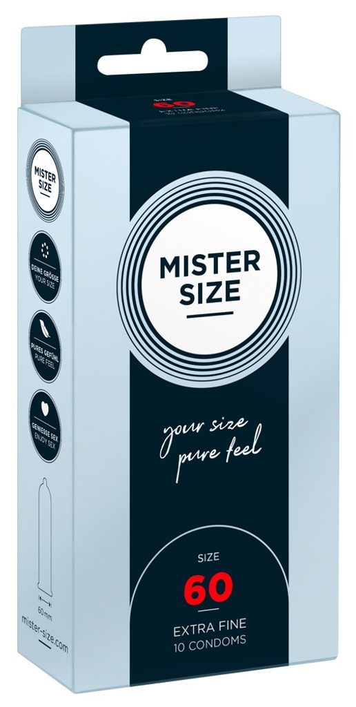 Výkonný penis má mnoho výhod - pokud víte, jak ho dobře používat. A samozřejmě musí fungovat i antikoncepce, aniž byste pokaždé mysleli na to, že se váš nejlepší kousek dusí v příliš těsném kondomu. S MISTER SIZE 60 do sebe vše perfektně zapadá a vy se konečně můžete plně soustředit na dobré pocity. Užijte si ten okamžik a nechte se unášet do nepředstavitelných výšin.