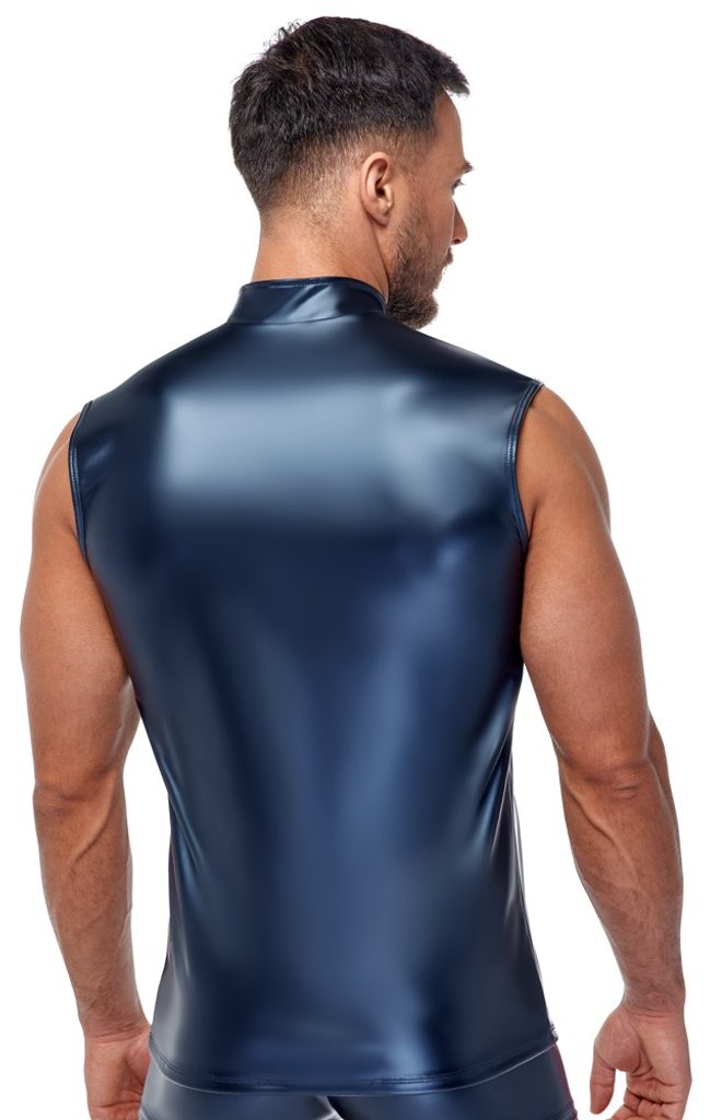 Elegantní modré tílko od značky NEK zaujme stylovým matně metalickým vzhledem, který přirozeně přitahuje pozornost i doteky. Je bez rukávů, přiléhavé a těsně kopíruje tělo, díky čemuž zvýrazňuje siluetu.