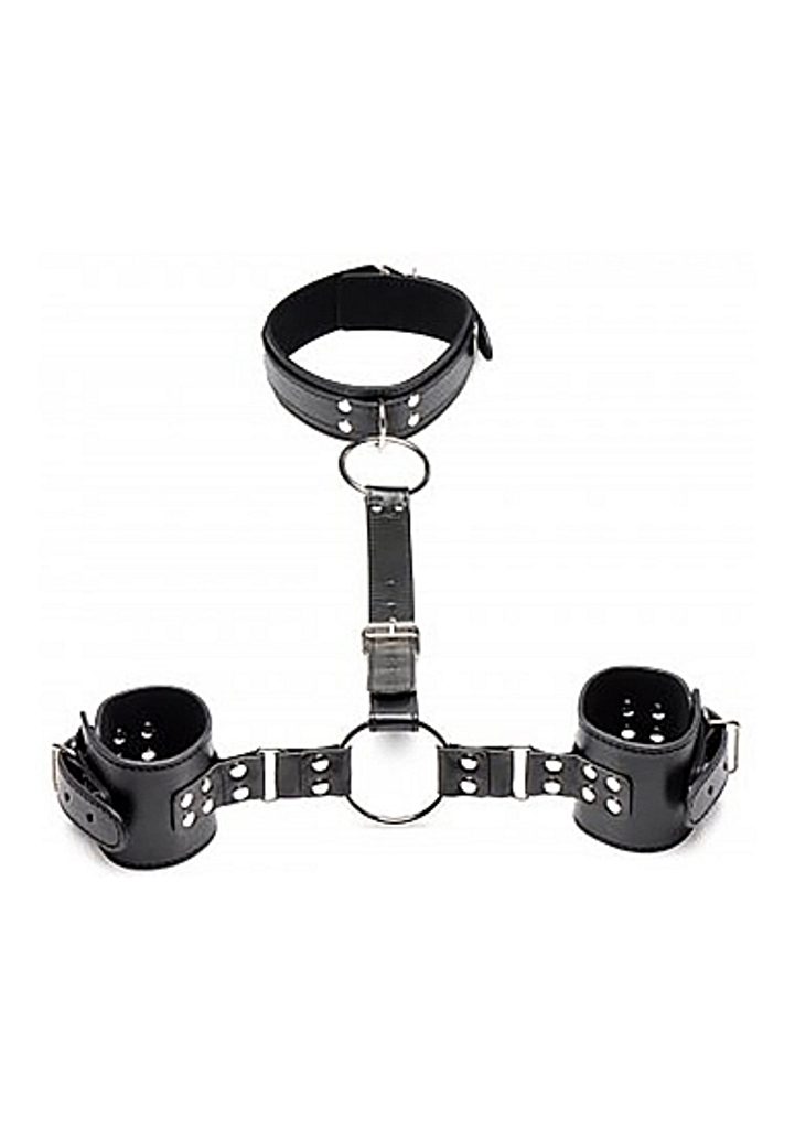 Připoutejte svého submisivního otroka do těchto pout a obojku od značky Strict! Měkká vnitřní podšívka, která je šetrná k jejich pokožce, takže můžete límec a manžety na zápěstí sevřít tak těsně, jak je to možné. PU kůže vhodná pro vegany se snadno čistí a stále si zachovává sexy klasický vzhled kůže! Velké O-kroužky jsou vyrobeny ze silného kovu bez obsahu niklu a mohou k nim být připojeny další spojovací prvky. Pomocí přezky se přizpůsobí tak, aby perfektně vše sedělo.