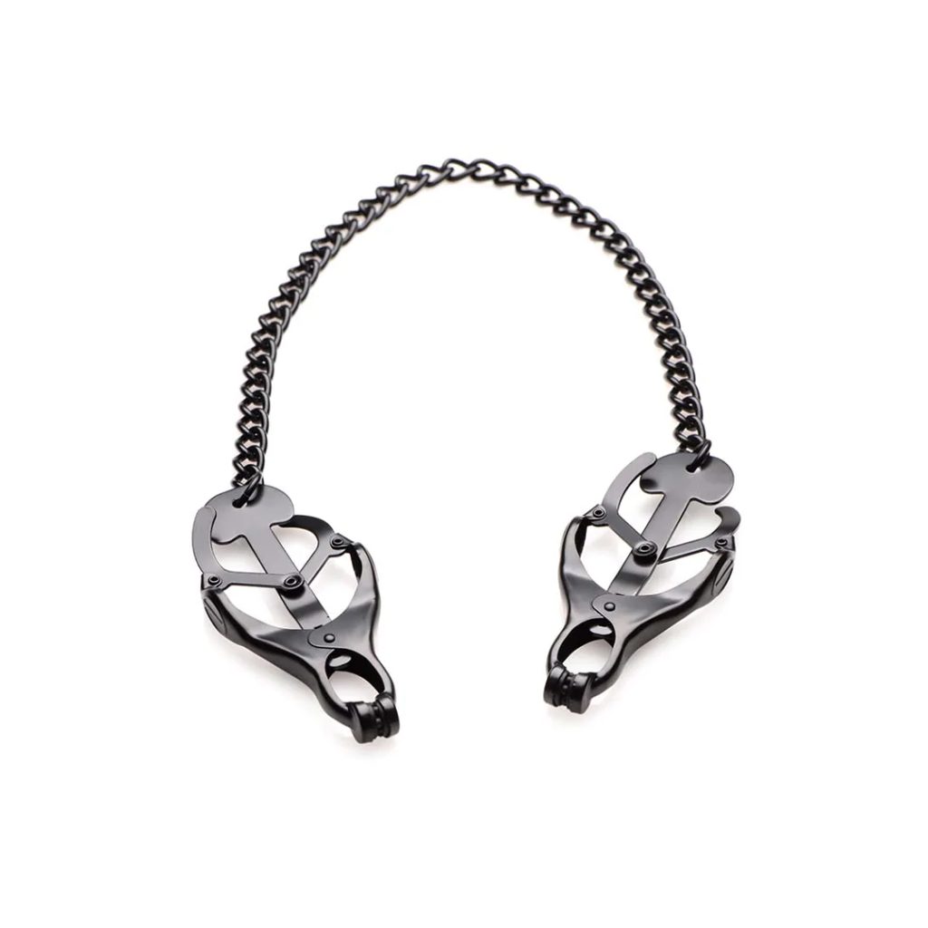 Skutečná klasika. Monarch Nipple Vice začíná jemným pocitem... dokud nezatáhnete za řetízek. S rostoucím napětím se intenzita zvyšuje. Mechanismus ve stylu „clover“ zajišťuje pevné a bezpečné sevření na citlivé pokožce, které nepoleví. Ideální pro sólové objevování nebo převzetí kontroly s partnerem.